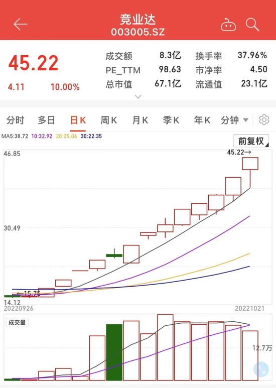 近期,职业教育板块表现不俗,多只概念股大幅上涨,其中最为亮眼的个股是竞业达,公司于2020年9月22日登陆深市主板,目前主营智慧教育,并为智慧轨道行业提供产品与服务。今日,竞业达继续走强且再度涨停,近13个交易日累计上涨180%。