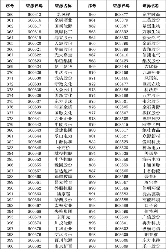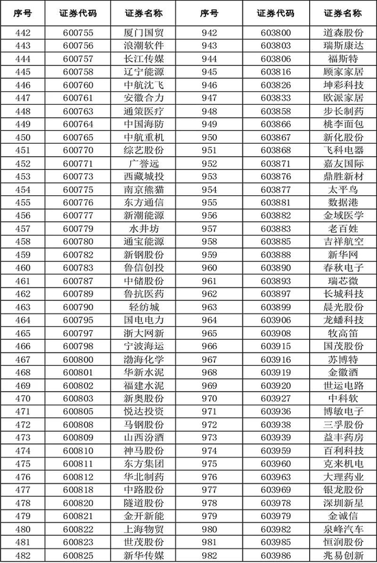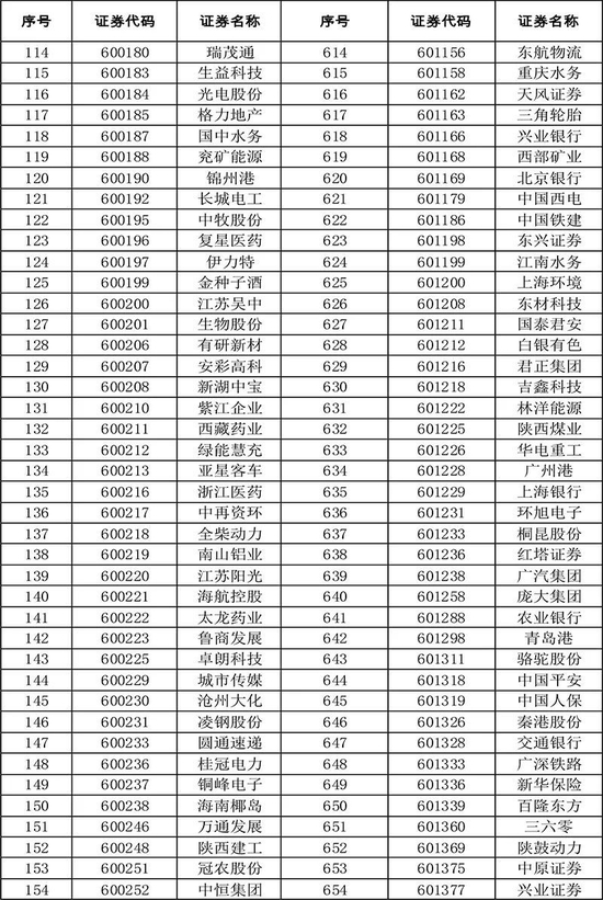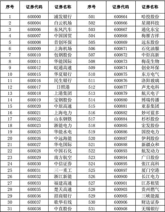 上交所融资融券标的证券名单(不含科创板股票及存托凭证)