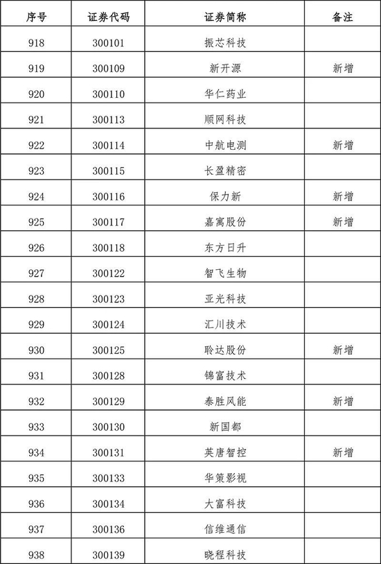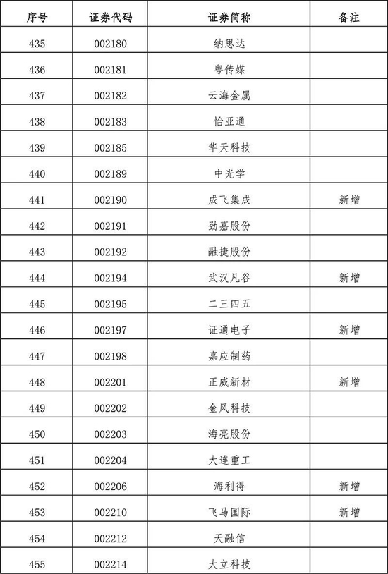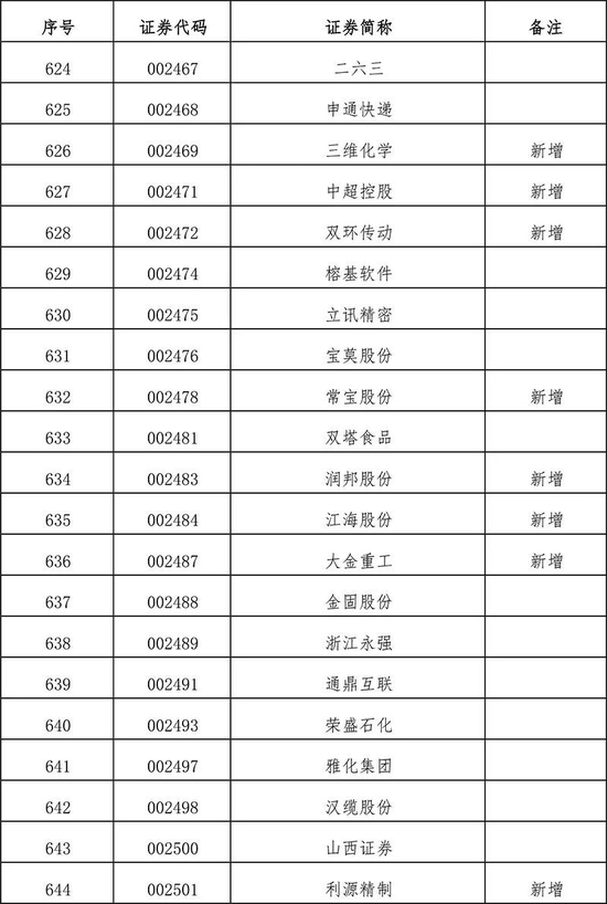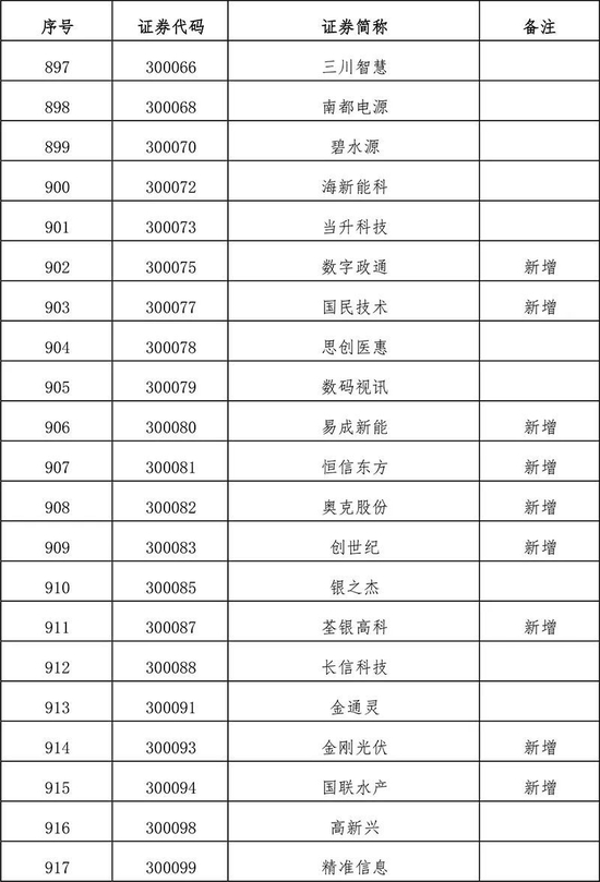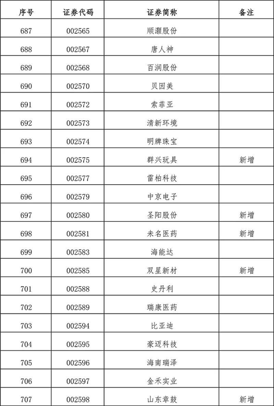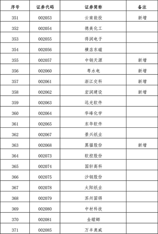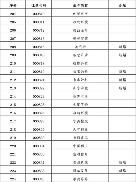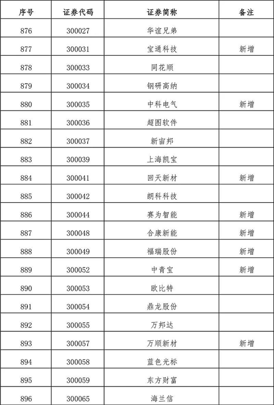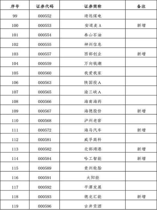 深交所融资融券标的股票名单(不含《深圳证券交易所创业板交易特别规定》施行后上市的创业板股票)