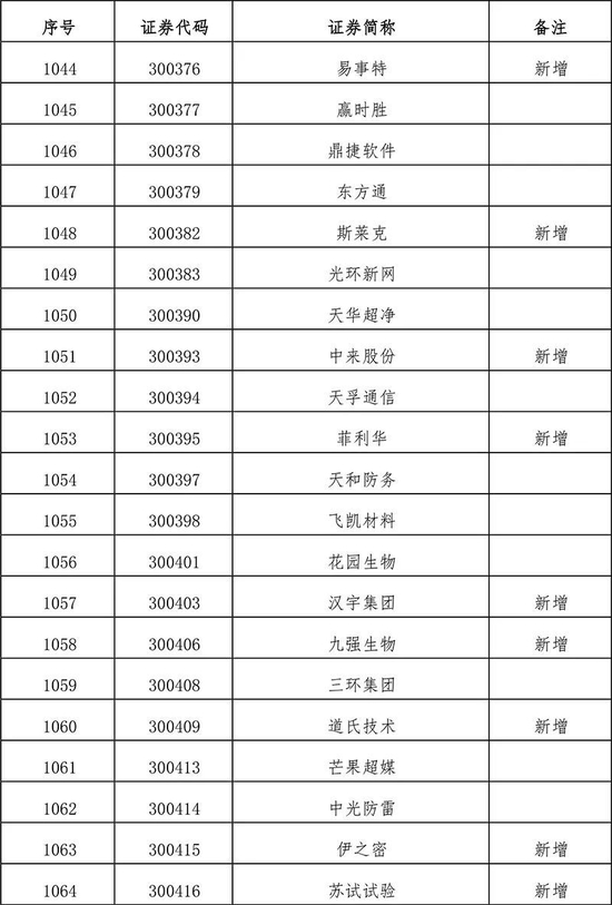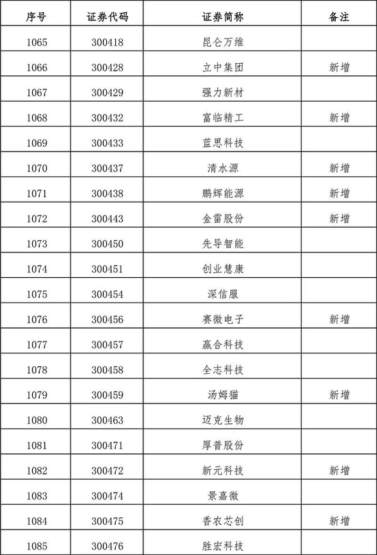 此前,深交所已6次扩大标的股票范围,创业板注册制股票自上市首日起即可作为融资融券标的,标的证券结构持续优化。本次标的股票范围扩大后,深市标的股票流通市值占深市全部A股股票流通市值的比例接近90%,实现对创业板指数成分股、沪深300指数中深市成分股的全覆盖,对中证500指数、中证1000指数中深市成分股的覆盖率分别达到97%、83%。