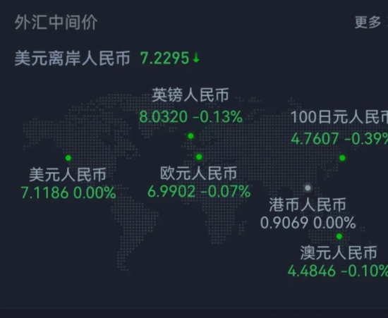周五在岸人民币兑美元16:30收盘报7.2494,较上一交易日跌117个基点,本周累跌563个基点;周五夜盘收报7.2244。人民币兑美元中间价报7.1186,调升2个基点,本周累计调贬98个基点。交易员指出,中间价表现仍体现监管层态度,市场将关注下周中间价及汇价走向。