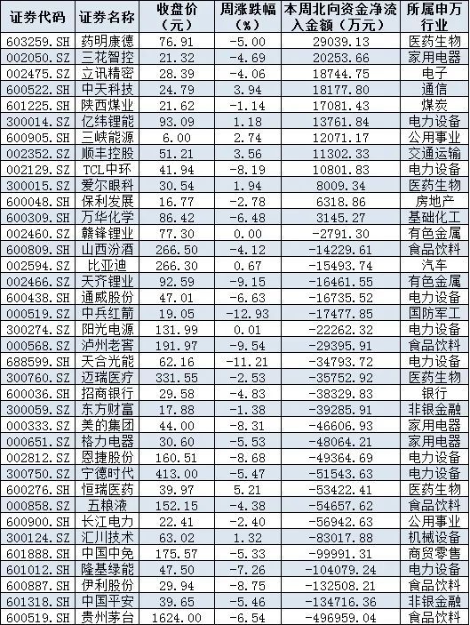 资金方面,周五,北向资金全天单边净卖出89.23亿元,创8月23日以来新高;本周5个交易日北向资金连续减仓,累计净流出金额达293.3亿元,创逾7个月新高。从前十大成交活跃股来看,本周,药明康德(维权)、三花智控等2只个股,北向资金净买入金额均超2亿元。另外,贵州茅台、中国平安、伊利股份、隆基绿能等个股遭北向资金净卖出金额均超10亿元。