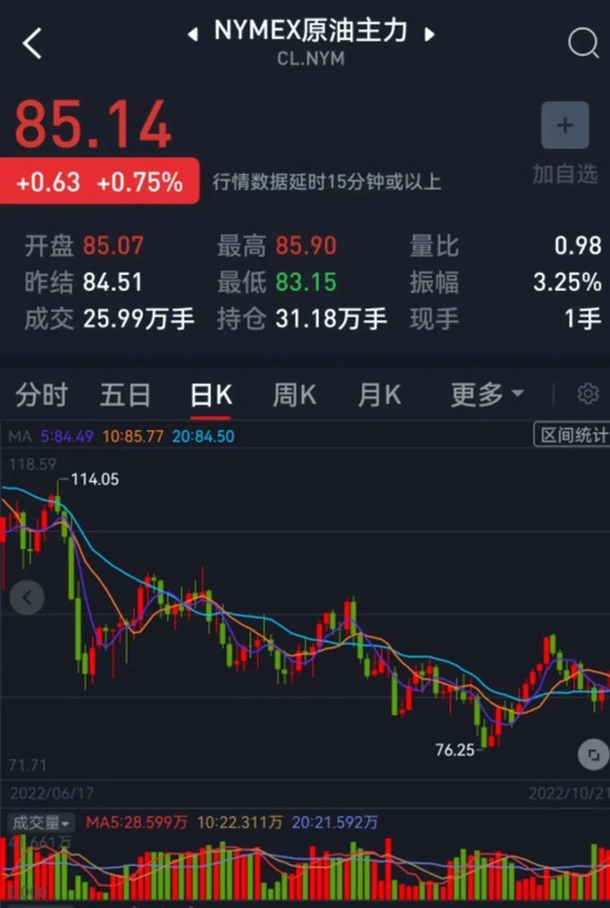 周五,国际油价全线上涨,美油12月合约涨0.75%,报85.14美元/桶。布油12月合约涨1.32%,报93.6美元/桶。本周,美油12月合约跌0.55%,布油12月合约涨2.15%。