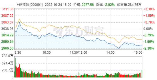 截至24日收盘,沪指报2977.56点,跌2.02%;深成指报10694.61点,跌2.05%;创业板指报2336.84点,跌2.43%。个股总体跌多涨少,两市超3800只个股下跌。