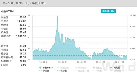 而从中证500的估值水平看,当前市盈率在20倍左右,今年以来一直在机会值以下徘徊。