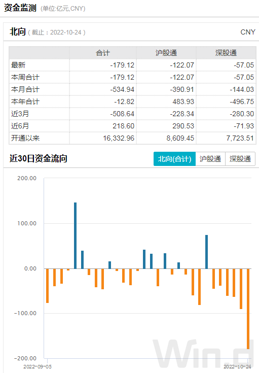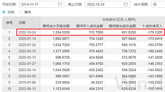 此外,从单日卖出额来看,10月24日单日净卖出额达179.12亿元,创沪深港通开通以来最大单日净卖出额。