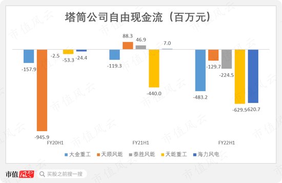 再将资本开支考虑之后,塔筒公司的自由现金流更差。