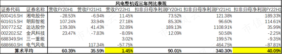 风电整机的2022年上半年营收同比增速均值回落至1.45%,扣非归母净利润同比增速均值回落至40%。