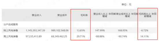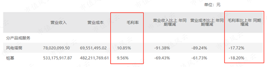 其实泰胜风能海上装备营收同比下滑88.9%,可以说跌麻了,但是报告期内公司的海上装备集中在导管架、超大单桩等高毛利产品,所以毛利率反而有所抬升。
