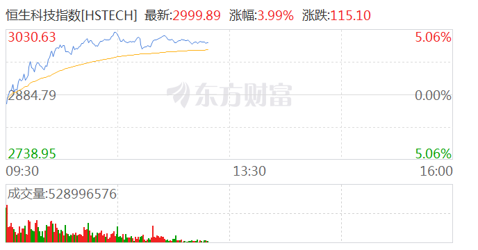 港股方面,今日再度强势反弹,盘中涨势持续扩大,恒生科技指数一度涨超4.8%。新能源汽车板块持续走高,蔚来涨超14%,小鹏汽车涨超13%。
