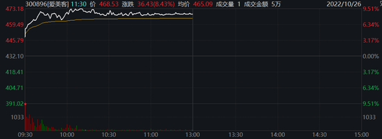 爱美客今天上午股价大涨,盘中涨幅一度超过9%。