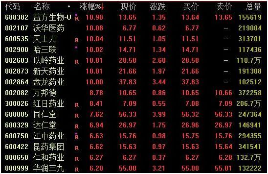 中药股集体大涨