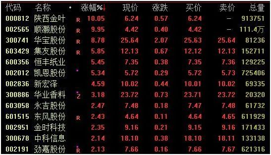 烟草概念盘中强势拉升,截至收盘,陕西金叶、顺灏股份涨停,华宝股份涨近9%,集友股份、凯恩股份涨超5%。
