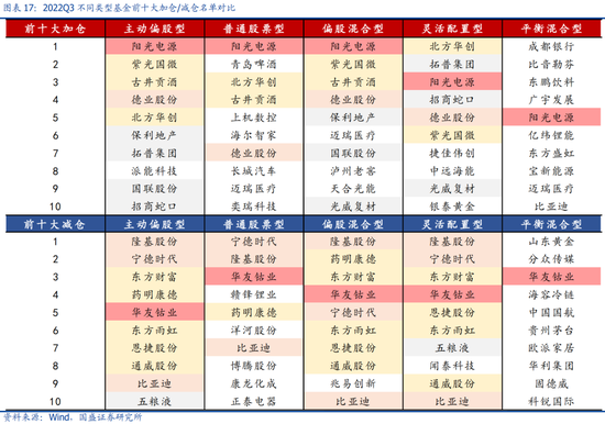 总结而言,三季度内忧外患交织,赛道优中选优与低位反转布局是调仓主线。三季度以来,外胀屡超预期支撑全球流动性收紧提速,人民币贬值压力凸显;与此同时,国内地产信贷压力逐步暴露,地产断供事件显著拖累内生性信贷修复预期;而后8月以来,外需压力随之显现,出口数据连续两月环比降速,海外衰退风险进一步抬升。整体看,赛道股优中选优与低位反转布局是基金三季度的加仓主线;一是赛道投资前期“抱团”已较为充分,而增量资金又持续后继乏力,导致赛道投资“内卷”成为必然,最具确定性的光伏与航空装备成为赛道内卷的中心;二是仓位与估值均处低位,且具备基本面反转可能的板块,也成为资金在赛道投资外左侧布局的首选,如利空持续释放的地产、疫情反复制约的交运、估值调整极为充分的半导体和医疗器械,都成为基金三季度主动增持的方向。