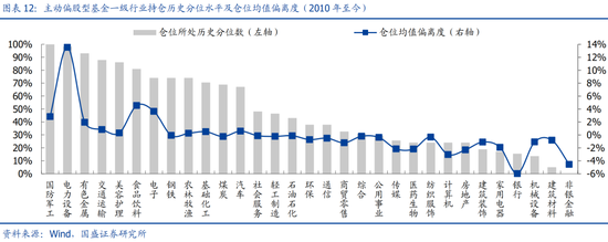 历史视角下,赛道配置走向分化,军工仓位创历史新高。三季度赛道投资走向分化,基金仓位逐步由重仓板块向外扩散,军工获显著加仓,仓位刷新2010年以来新高,此外电力设、有色金属、交通运输、美容护理和食品饮料仓位仍处历史高位,均处80%分位之上。落脚到细分行业层面,光伏设备仓位续创历史新高,家电零部件、航空装备与航运港口也在三季度刷新历史峰值,同时非金属材料、酒店餐饮、军工电子、城商行、农商行和医疗美容等行业仓位所处的历史分位也均在98%以上。