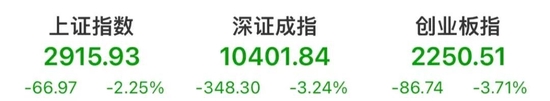 10月28日,大盘全天低开低走,指数午后维持弱势格局。沪指再创阶段调整新低,再次下挫逼近2900点。截至收盘,沪指跌2.25%,深成指跌3.24%,创业板指跌3.71%。