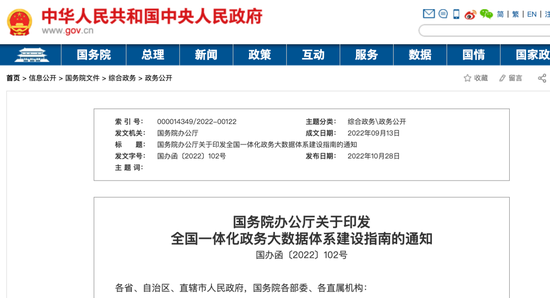 据中国政府网消息,国务院办公厅28日印发《全国一体化政务大数据体系建设指南》(以下简称《指南》)。《指南》提出建设目标,2023年底前,全国一体化政务大数据体系初步形成,基本具备数据目录管理、数据归集、数据治理、大数据分析、安全防护等能力,数据共享和开放能力显著增强,政务数据管理服务水平明显提升。