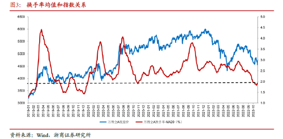 换手率是评估市场情绪的有效指标之一,我们采取的具体口径为“基于万得全A自由流通市值的每日换手率20日均值”。
