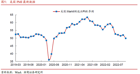 从六轮加息周期的回溯经验来看,美国PMI逼近荣枯线是美联储停止加息的重要信号。就最新数据来看,10月美国Markit制造业PMI(季调)已降至荣枯线下(49.9%),美国经济下行压力逐渐显性化。与此同时,据财联社10月20日报道,美联储布拉德表示“美联储可能会选择将2023年的紧缩提前到2022年”。