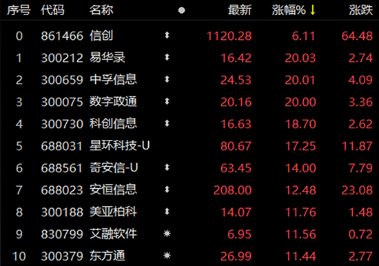 经过上周五的短暂休整后,信创概念今日早盘重现强势,数字经济、半导体等板块占据涨幅榜前列,个股再掀涨停潮。