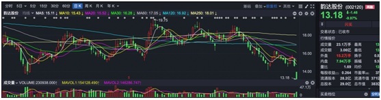 继续看,快递物流板块四大龙头集体下跌,韵达股份、申通快递双双跌停,顺丰控股下跌3%,圆通速递下跌2.83%。眼看“双十一”就要来了,快递物流应该是旺季到来,没想到股价先打了“骨折”。