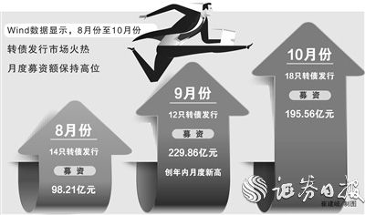 最近三个月,转债发行市场火热,月度募资额保持高位。Wind数据显示,8月份至10月份,44只转债募资总额达523.63亿元。其中,8月份共有14只转债发行,募资98.21亿元;9月份共有12只转债发行,募资229.86亿元,创年内月度新高;10月份共有18只转债发行,募资195.56亿元。