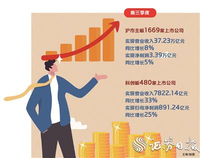 前三季度,沪市主板公司业绩实现稳定增长。数据显示,截至10月31日,沪市主板1669家上市公司完成三季报披露。前三季度,沪市主板公司合计实现营业收入37.23万亿元、净利润3.39万亿元、扣非后净利润3.27万亿元,同比分别增长8%、5%和6%。