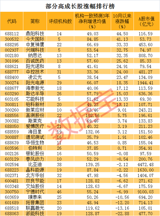高成长股名单出炉
