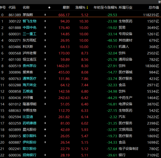 茅指数涨幅超过5%,相关个股均表现不错。
