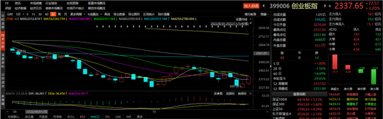 沪指收涨2.62%报2969.2点,创业板指大涨3.2%报2337.65点。上证50收涨4.39%,沪深300收涨3.58%,科创50收涨1.41%。今日沪深两市成交额上升至9775亿元,为9月1日以来的最大日交易量。