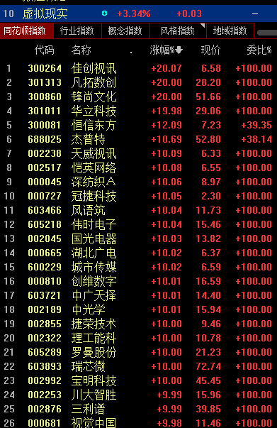 虚拟现实板块掀涨停潮