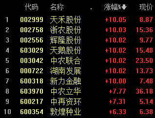 近期引发市场讨论的还有供销社概念。继周一、周二连续大涨后,今日,供销社概念继续飙升,同花顺供销社指数涨幅达7.98%,天鹅股份、天禾股份、浙农股份、中农联合等多股封上涨停。