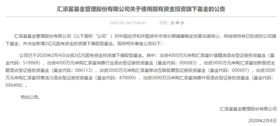 这是因为在2020年2月,汇添富公告出资2亿元固有资金投资旗下偏股型基金。汇添富价值精选就是其中之一,而且是申购金额最高的之一。