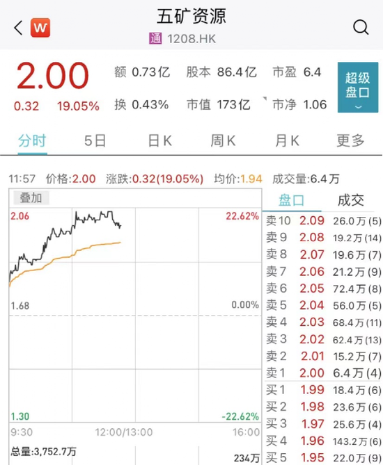 港股有色股同样表现强势,五矿资源涨超20%,招金矿业、紫金矿业涨超10%,金川国际、中国黄金国际等跟涨。