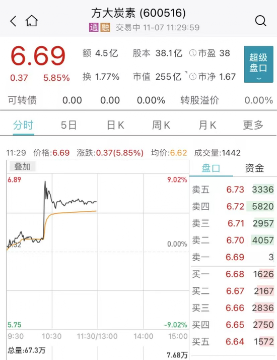 与此同时,石墨烯概念直线拉涨,方大炭素冲板,德尔未来、华丽家族、宝泰隆、星球石墨等快速拉升。