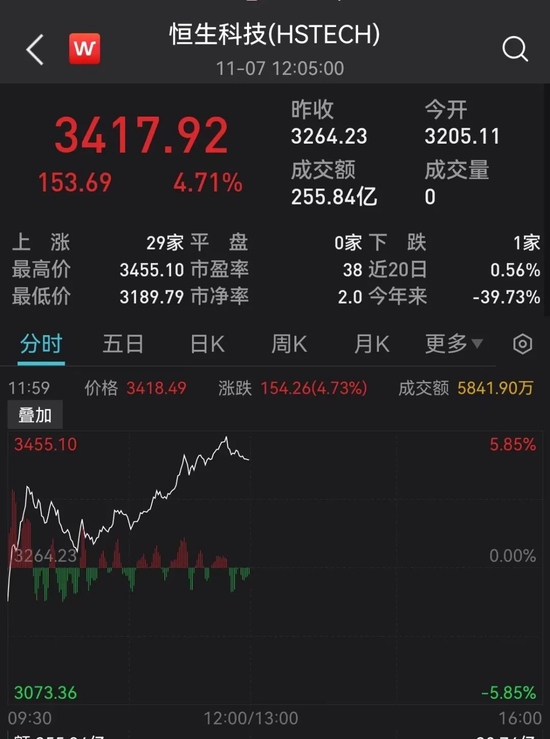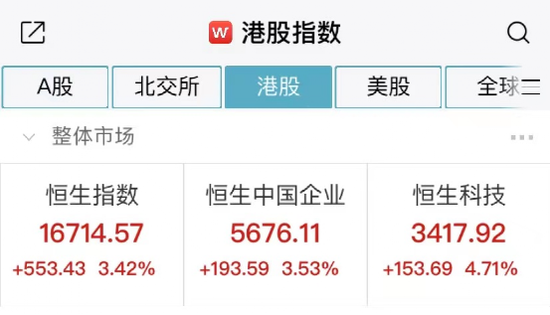 港股方面,继续气势如虹。截至午间收盘,恒生指数午盘涨3.42%;恒生科技指数涨4.71%。
