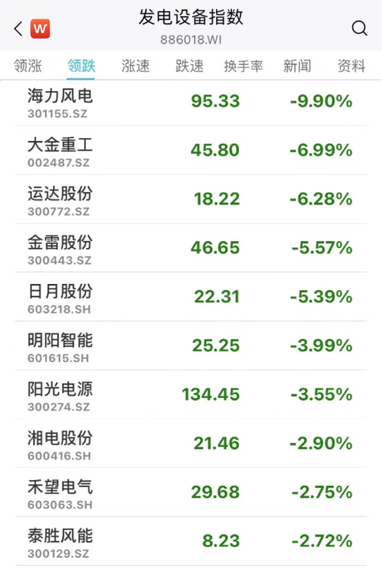 风电设备板块走低