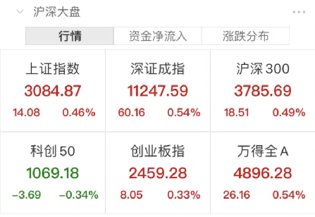 11月7日,A股三大指数均小幅上涨。截至上午收盘,沪指涨0.46%,深成指涨0.54%,创业板指涨0.33%。