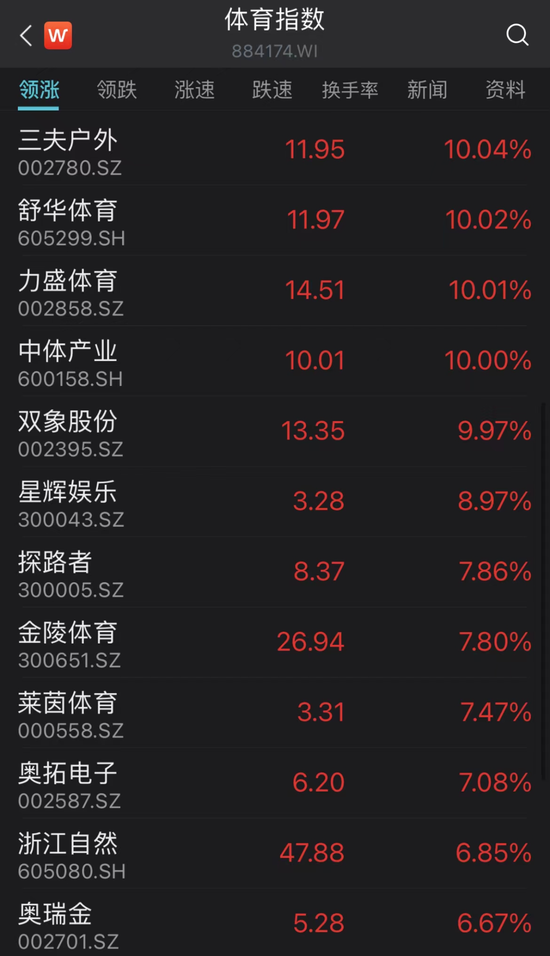 首先是体育板块,今天掀起涨停潮。