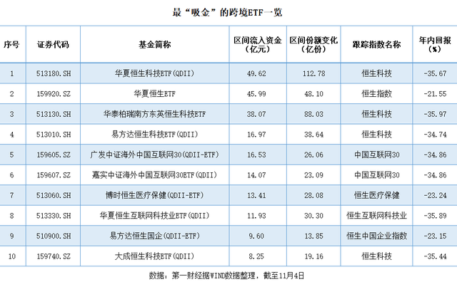 而从ETF产品的份额变动情况来看,9月13日以来份额增长超过10亿份的股票型ETF产品有17只,其中,份额数量提升最多的是华夏上证科创板50成份ETF,区间份额增加77.27亿份;11月4日,该产品份额达356.43亿份,创历史新高。