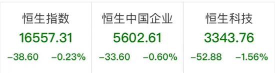 11月8日周二,市场情绪重归谨慎,港股冲高回落,全天小幅震荡,最终集体收跌。截至收盘,恒生指数收跌0.23%,报16557.31点;恒生科技指数跌1.56%,报3343.76点;恒生国企指数跌0.6%,报5602.61点。