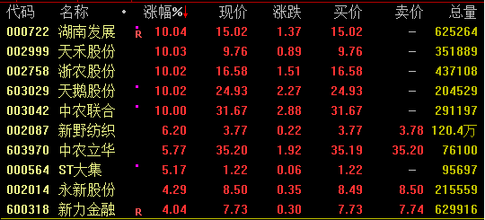 供销社概念今日再度爆发,截至收盘,湖南发展、天禾股份、浙农股份、天鹅股份、中农联合等涨停,新野纺织涨逾6%,ST大集(维权)斩获四连板。