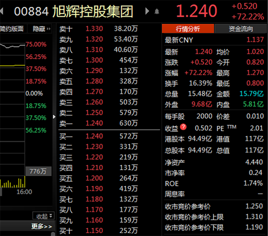 港股方面,地产股也呈现集体爆发,旭辉控股涨超70%,新城发展涨超50%。