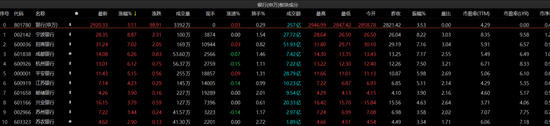 银行个股方面,宁波银行涨超8%,招商银行、成都银行、杭州银行涨超6%,平安银行涨超5%。非银金融个股方面,湘财股份涨停,东方证券涨超8%,东方财富、华铁应急涨超5%。