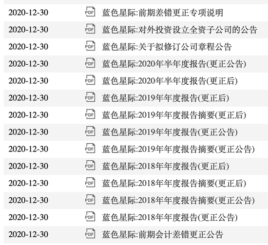 不同于新三板,A股市场对于公司的审核更加严格,为了保持数据统一,蓝色星际在IPO递表之前还对新三板曾经公布的财务数据进行了几轮更正调整,甚至在IPO《招股书》发布前一天还在更正财务数据。