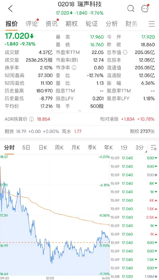 根据相关公告消息,世界光学设备龙头舜宇科技决定起诉瑞声科技侵犯了其发明专利及/或实用新型专利。瑞声收跌近10%,报205.05亿港元;舜宇收跌超2%。