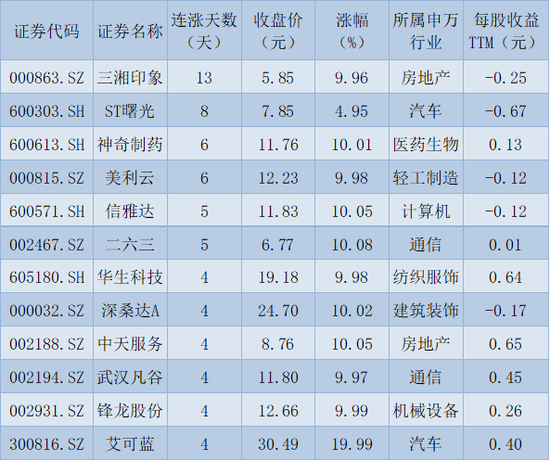 表:连续上涨4天且今日收盘涨停股一览