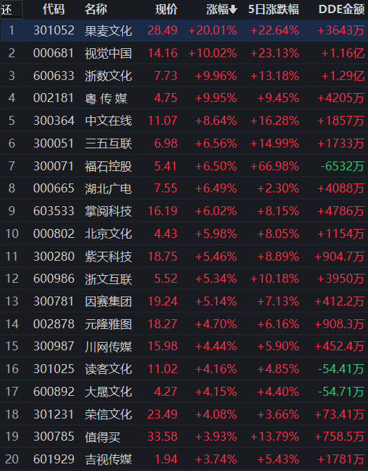 传媒行业领涨