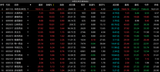 中药板块个股方面,太龙药业、康缘药业、金花股份(维权)、以岭药业、众生药业、天士力、新天药业等多股涨停,维康药业涨超8%,特一药业、华润三九、珍宝岛涨超6%。