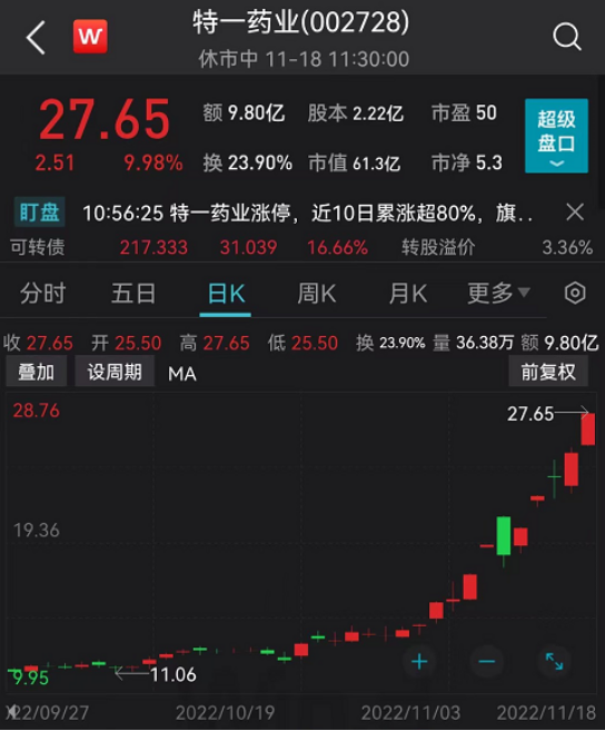 中药板块今日持续走高,特一药业再度涨停,最近11个交易日股价翻倍,康缘药业、太龙药业两连板,方盛制药、众生药业、华森制药、佐力药业等继续冲高。